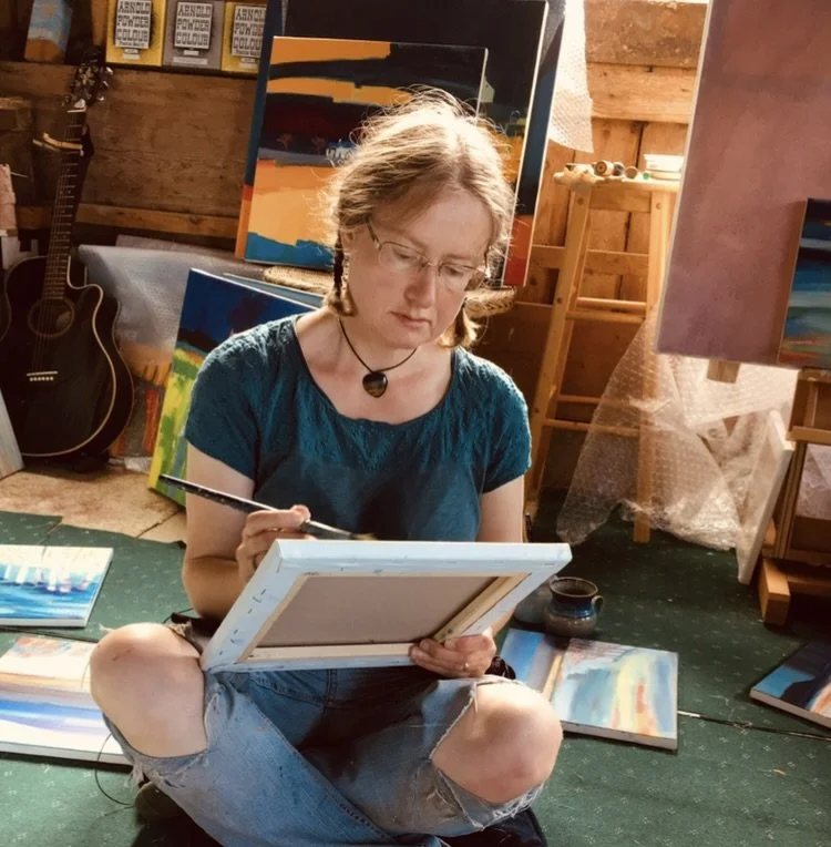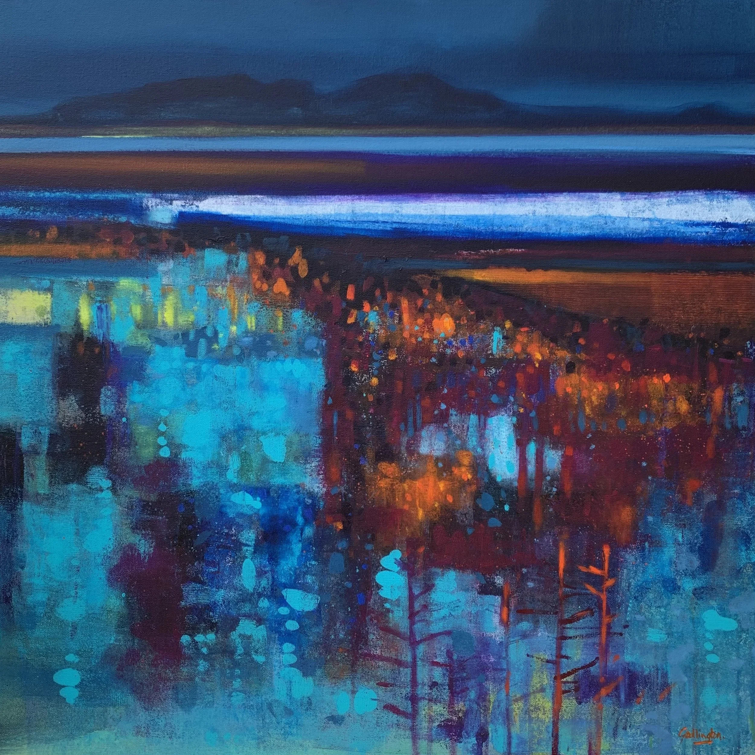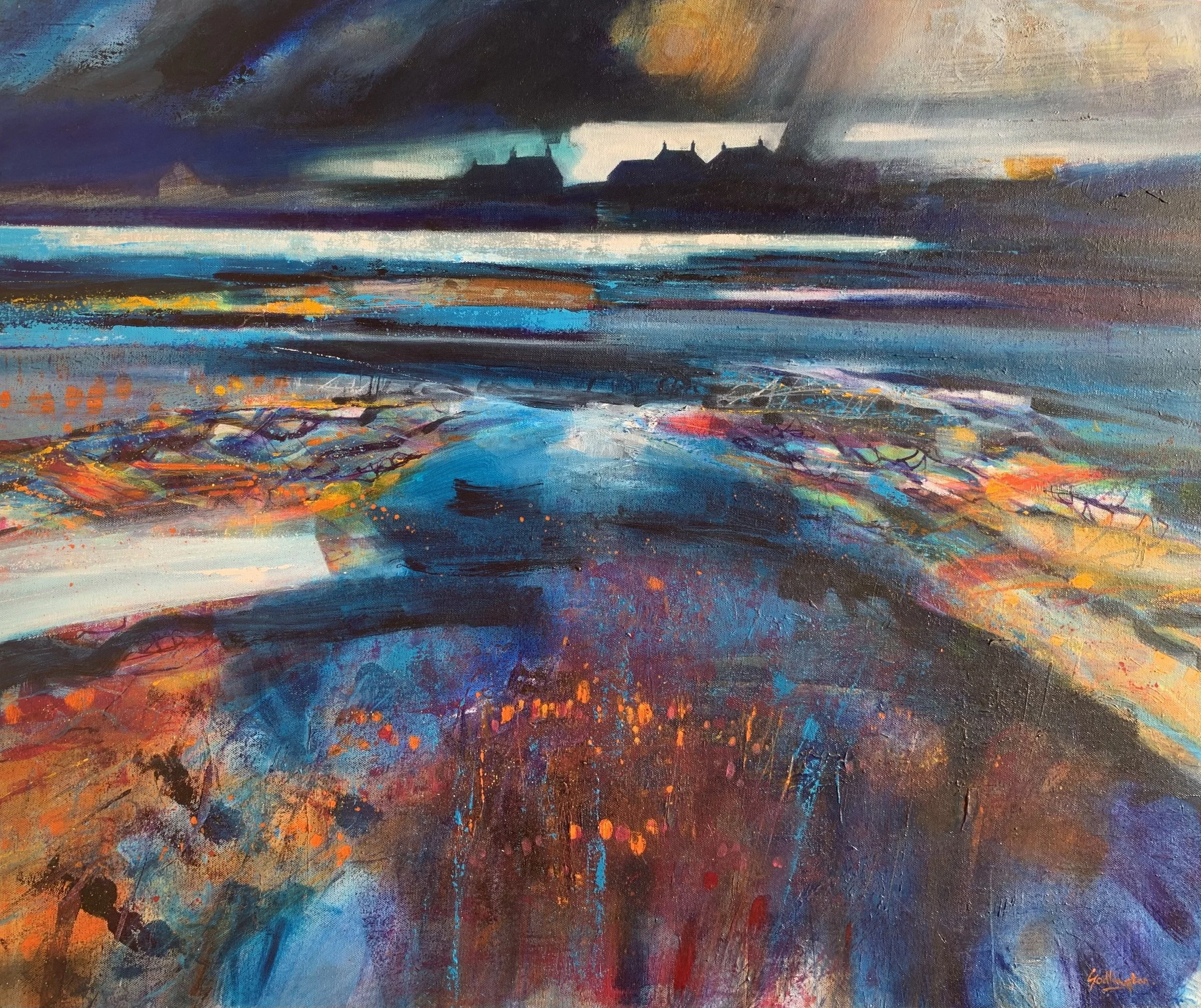 Penny Godlington is a contemporary Scottish land and seascape painter. Her paintings reflect a deep connection with the Scottish landscape. On her travels from her home in Strathspey, she gathers visions of distant islands, wave-lashed shores and stormy skies. She works with acrylics using bold colours at her studio in an old steading overlooking Abernethy Forest in the Cairngorms National Park. Her paintings express the drama of the Highlands and the islands of the Inner and Outer Hebrides and Orkney.